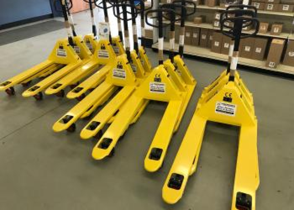Always In Stock So. Many. Pallet jacks. We always have lots of 27″ x 48″ pallet jacks in stock and ready to go. Right now we even have some 20.5″ x 48″ available too. Drop by our parts department any weekday before 4:00 pm a drive away the proud owner of a brand-new pallet jack!…